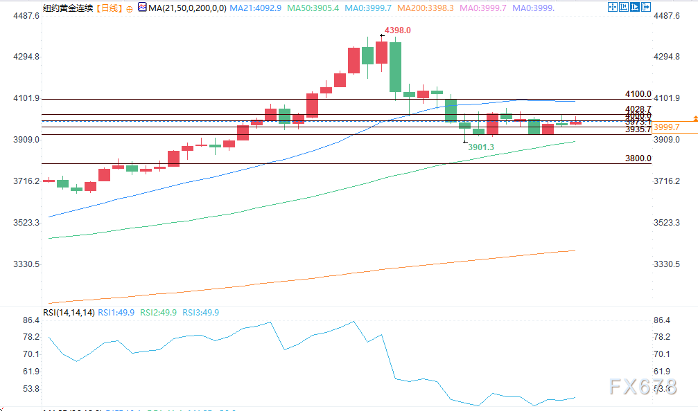 技术面来看,12月黄金期货多头的下一个上行目标是收盘价突破4100.00美元的强劲阻力位。空头的近期下行目标是将期货价格推至3800.00美元的强劲技术支撑位下方。第一阻力位见于周四高点4028.70美元,随后是4059.90美元;第一支撑位见于周四低点3973.20美元,随后是本周低点3935.70美元。